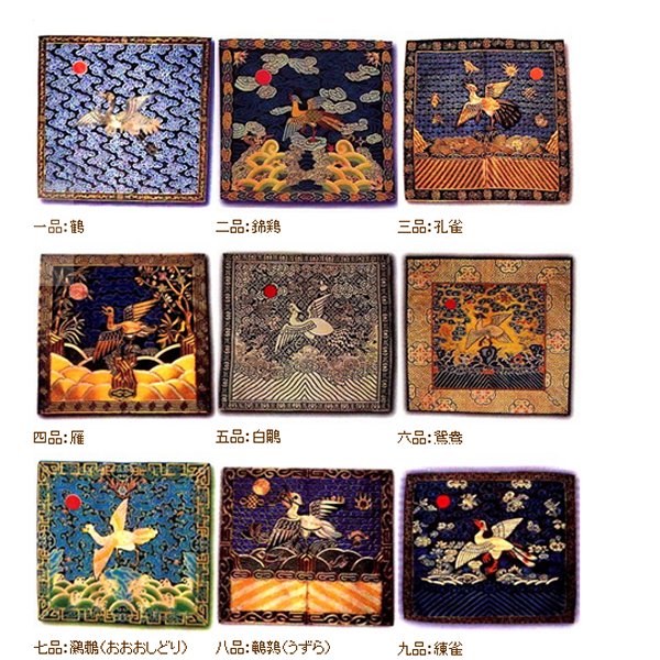 この胸の刺繍は、文官が鳥類、武官が獣類、そして官位によりそれぞれ描かれている動物が違います。