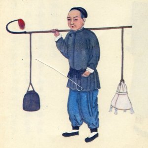 独特の天秤棒を担いでいますが、何が入っているのか.... 説明がありませんでした.... どこかで何か見つかったら、改めて紹介します。