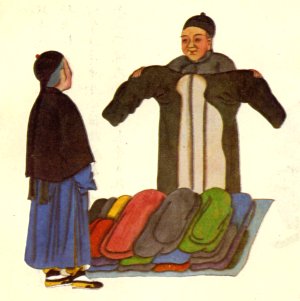 北京民間生活彩図:賣估衣図(古着屋の図)