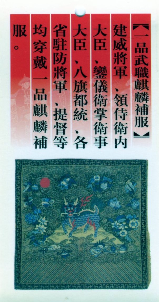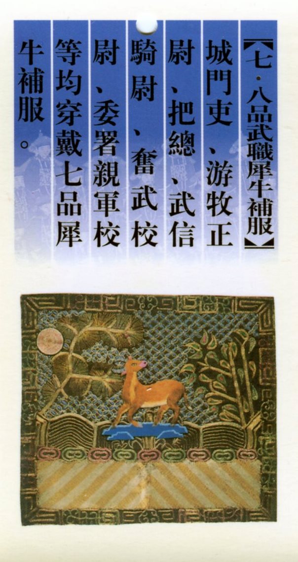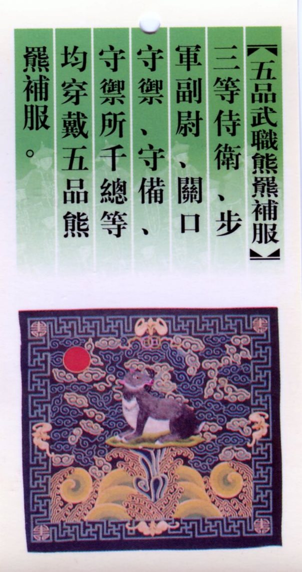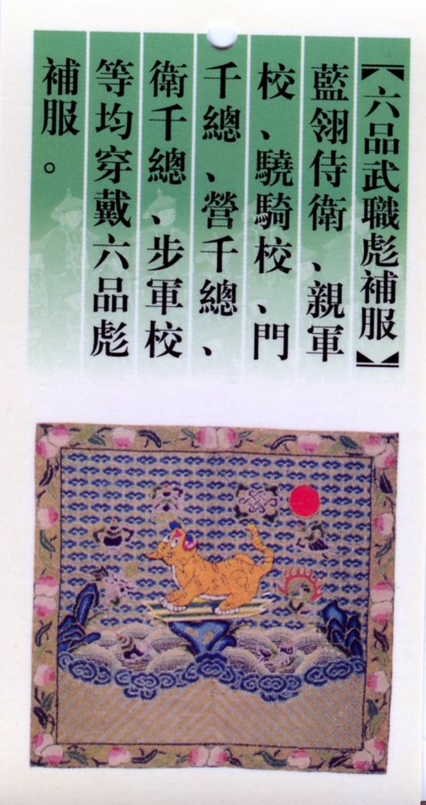 清朝官僚の官服に付けた「補子」という階級章の武官編。