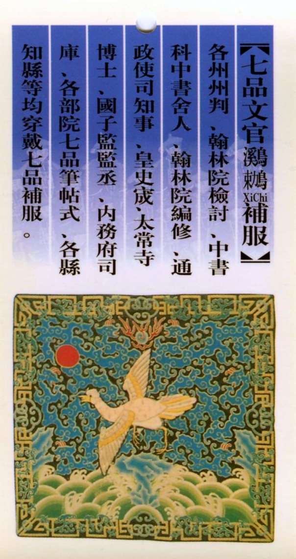 四品:雁 五品:白鷴 六品:鴛鴦