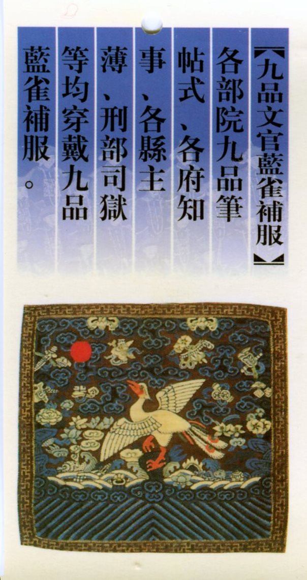 七品:鸂鶒(おおおしどり) 八品:鵪鶉(うずら) 九品:練雀