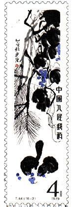 画像は、有名な画家、斉白石の「松鼠葡萄」を切手にしたものです。