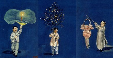 この三種類が主な提灯。中元の夜、子供たちは、これらの提灯をもって町を練り歩きました。