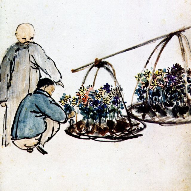 北京風俗図 16. 旗装少婦 (満州族の女性) の図解両把頭: 女性の髷の形です。 大拉翅: 清朝末期に流行した頭の飾りのこと
