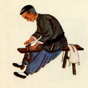 北京民間生活彩図:剃刀図(かみそり研ぎの図)