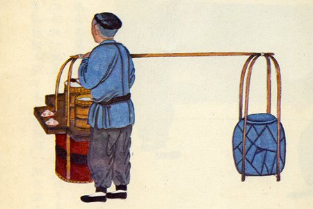 北京民間生活彩図:做席図(葦簀(よしず)作りの図)
